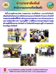 สำนักงานแรงงานจังหวัดตรัง โครงการหน่วยบำบัดทุกข์ บำรุงสุข สร้างรอยยิ้ม ให้ประชาชนจังหวัดตรัง ณ โรงเรียนวัดถ้ำพระพุทธ ตำบลหนองบัว อำเภอรัษฎา จังหวัดตรัง