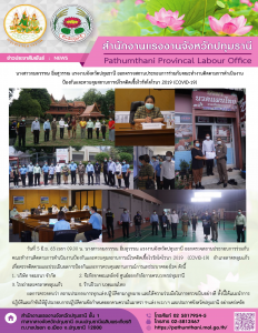 แรงงานจังหวัดปทุมธานี ออกตรวจสถานประกอบการร่วมกับคณะทำงานติดตามการดำเนินงานป้องกันและควบคุมสถานการณ์โรคติดเชื้อไวรัสโคโรนา 2019