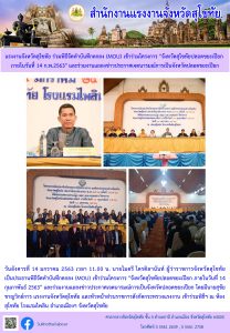 แรงงานจังหวัดสุโขทัย ร่วมพิธีจัดทำบันทึกตกลง (MOU) เข้าร่วมโครงการ “จังหวัดสุโขทัยปลอดขยะเปียก ภายในวันที่ 14 ก.พ.2563” และร่วมงานแถลงข่าวประกาศเจตนารมณ์การเป็นจังหวัดปลอดขยะเปียก