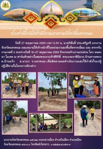 แรงงานจังหวัดสกลนคร ร่วมออกตรวจติดตามและสนับสนุนการดำเนินโครงการแก้ไขปัญหาความเดือดร้อนด้านอาชีพ กิจกรรมจ้างงานเร่งด่วน “โคก-หนอง-นา โมเดล ฟาร์มตัวอย่างต้านภัยโควิด-19”