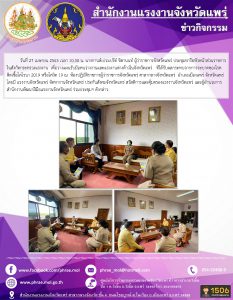 สำนักงานแรงงานจังหวัดแพร่ ประชุมหารือเพื่อวางแผนรับมือคนว่างงานและแรงงานต่างด้าวในจังหวัดแพร่ ทีได้รับผลกระทบจากการระบาดของโรคติดเชื้อโคโรนา 2019 หรือโควิด 19