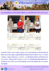 แรงงานจังหวัดสุโขทัย มอบตั๋วแลกเงินคืนภาษีไต้หวัน แรงงานไทยที่เคยเดินทางไปทำงานต่างประเทศ
