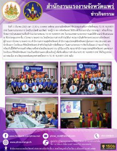 สำนักงานแรงงานจังหวัดแพร่ ประชุมส่งเสริมการจัดตั้งชมรม TO BE NUMBER ONE ในสถานประกอบการ จังหวัดแพร่