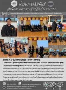 สำนักงานแรงงานจังหวัดกำแพงเพชร ร่วมเป็นวิทยากรโครงการสนับสนุนการมีส่วนร่วมเครือข่ายในการป้องกันปัญหาพฤติกรรม และการกระทำผิดของเด็กและเยาวชน ประจำปีงบประมาณ พ.ศ.2569 ให้ความรู้แก่เด็กและเยาวชนในหัวข้อ “วัยรุ่นยุคใหม่ ปลอดภัยจากยาเสพติด”