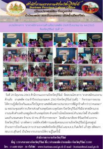 สำนักงานแรงงานจังหวัดบุรีรัมย์ จัดอบรมโครงการ “อาสาสมัครแรงงานต้านภัยยาเสพติด ประจำปีงบประมาณ พ.ศ.2563 จังหวัดบุรีรัมย์ รุ่นที่ 2”