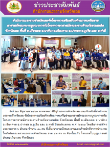 สำนักงานแรงงานจังหวัดเลย จัดโครงการเสริมสร้างศักยภาพเครือข่าย อาสาสมัครแรงงานบูรณาการกับโครงการอาสาสมัครแรงงานต้านภัยยาเสพติด จังหวัดเลย พื้นที่ อ.เมืองเลย อ.นาด้วง อ.เชียงคาน อ.ปากชม อ.ภูเรือ และ อ.ท่าลี่