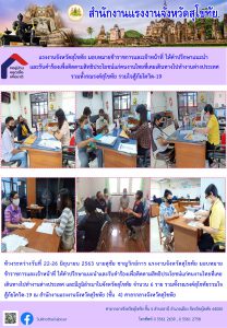 แรงงานจังหวัดสุโขทัย มอบหมายข้าราชการและเจ้าหน้าที่ ให้คำปรึกษาแนะนำและรับคำร้องเพื่อติดตามสิทธิประโยชน์แก่คนงานไทยที่เคยเดินทางไปทำงานต่างประเทศ รวมทั้งรณรงค์สุโขทัย รวมใจสู้ภัยโควิด-19