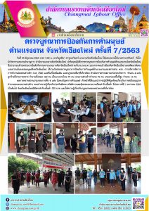 ตรวจบูรณาการป้องกันการค้ามนุษย์ด้านแรงงาน จังหวัดเชียงใหม่ ครั้งที่ 7/2563