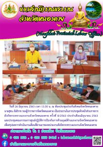 สรจ.หนองคายประชุมหัวหน้าส่วนราชการสังกัดกระทรวงแรงงานจังหวัดหนองคาย ครั้งที่ 8/2563 ประจำเดือนมิถุนายน 2563 และประชุมคณะกรรมการศูนย์ปฏิบัติการป้องกันการค้ามนุษย์ด้านแรงงานจังหวัดหนองคาย