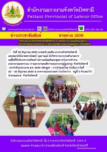 หน่วยงานสังกัดกระทรวงแรงงานจังหวัดสระบุรี เข้าร่วมบูรณาการเข้าตรวจป้องกันการค้ามนุษย์ด้านแรงงาน และสุ่มตรวจปัสสาวะค้นหาสารเสพติดกลุ่มผู้ใช้แรงงาน รวมทั้งรณรงค์ส่งเสริมการจัดตั้งชมรม TO BE NUMBER ONE