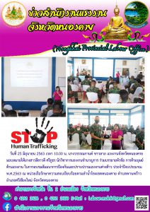 สรจ.หนองคาย ร่วมบรรยายหัวข้อ การค้ามนุษย์ด้านแรงงานจังหวัดหนองคาย ในอบรมสัมมนาการป้องกันและปราบปรามแรงงานต่างด้าว ประจำปีงบประมาณ พ.ศ.2563