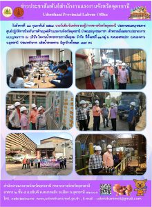 สำนักงานแรงงานจังหวัดอุดรธานี ตรวจเยี่ยมสถานประกอบการ ณ บริษัท โรงงานน้ำตาลทรายขาวเริ่มอุดม จำกัด