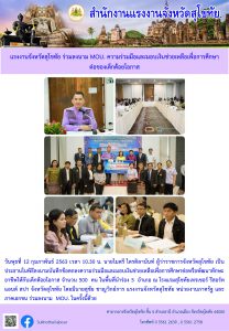 แรงงานจังหวัดสุโขทัย ร่วมลงนาม MOU. ความร่วมมือและมอบเงินช่วยเหลือเพื่อการศึกษาต่อของเด็กด้อยโอกาส