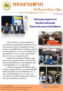 แรงงานจังหวัดตาก เข้าร่วมตรวจบูรณาการป้องกันการค้ามนุษย์ในสถานประกอบการจังหวัดตาก