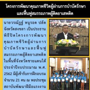 สำนักงานแรงงานจังหวัดสงขลา เข้าร่วมโครงการพัฒนาคุณภาพชีวิตผู้ผ่านการบำบัดรักษาและฟื้นฟูสมรรถภาพผู้ติดยาเสพติด ในพื้นที่จังหวัดชายแดนภาคใต้