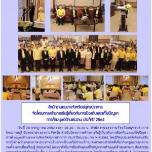โครงการสร้างการรับรู้เกี่ยวกับการป้องกันและแก้ไขปัญหาการค้ามนุษย์ด้านแรงงานจังหวัดสมุทรปราการ ประจำปีงบประมาณ พ.ศ.2562
