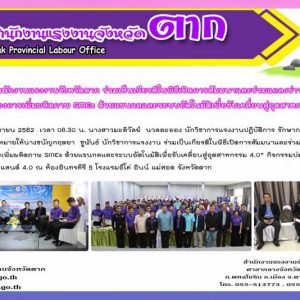 สำนักงานแรงงานจังหวัดตาก ร่วมเป็นเกียรติในพิธีเปิดการสัมมนาและร่วมแถลงข่าว “สัมมนาเรื่องการเพิ่มผลิตภาพ SMEs ด้วยแขนกลและระบบอัตโนมัติเพื่อขับเคลื่อนสู่อุตสาหกรรม 4.0”