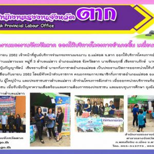 สำนักงานแรงงานจังหวัดตาก ออกให้บริการโครงการอำเภอยิ้มเคลื่อนที่ ณ วัดดอนแก้ว บ้านแม่ตาวแพะ หมุ่ที่ 3 ตำบลแม่ตาว อำเภอแม่สอด จังหวัดตาก