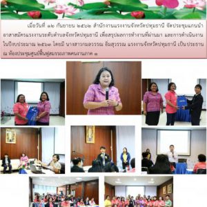สำนักงานแรงงานจังหวัดปทุมธานี จัดประชุมแกนนำอาสาสมัครแรงงานระดับตำบลจังหวัดปทุมธานี เพื่อสรุปผลการทำงานที่ผ่านมา และการดำเนินงานในปีงบประมาณ 2563