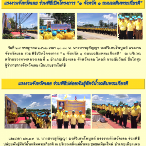 สำนักงานแรงงานจังหวัดเลย ร่วมพิธีเปิดโครงการ “1 จังหวัด 1 ถนนเฉลิมพระเกียรติ” และร่วมพิธีปล่อยพันธุ์สัตว์น้ำเฉลิมพระเกียรติ