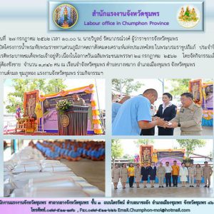 แรงงานจังหวัดชุมพร ร่วมพิธีเปิดโครงการน้ำพระทัยพระราชทานส่วนภูมิภาคสภาสังคมสงเคราะห์แห่งประเทศไทย ในพระบรมราชูปถัมภ์ ประจำปี พ.ศ.2562