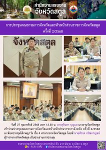 แรงงานสตูล เข้าร่วมประชุมคณะกรมการจังหวัดและหัวหน้าส่วนราชการจังหวัดสตูล ครั้งที่ 2/2568