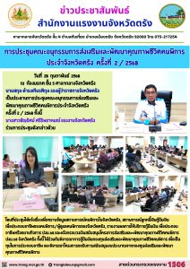 แรงงานจังหวัดตรัง ร่วมการประชุมคณะอนุกรรมการส่งเสริมและพัฒนาคุณภาพชีวิตคนพิการประจำจังหวัดตรัง ครั้งที่ 2/2568