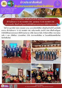 แรงงานจังหวัดพิจิตร พร้อมด้วยเจ้าหน้าที่ และบัณฑิตแรงงาน เข้าร่วมโครงการ TO BE NUMBER ONE และชมรม TO BE NUMBER ONE ระดับภาคเหนือ เพื่อสร้างขวัญและกำลังใจให้กับสถานประกอบการที่เข้าร่วมประกวด