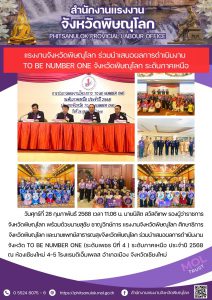 แรงงานจังหวัดพิษณุโลก ร่วมนำเสนอผลการดำเนินงาน TO BE NUMBER ONE จังหวัดพิษณุโลก ระดับภาคเหนือ