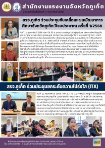 สรจ.ภูเก็ต ร่วมประชุมขับเคลื่อนแผนพัฒนาการ ศึกษาจังหวัดภูเก็ต ปีงบประมาณ ครั้งที่ 1/2568 /สรจ.ภูเก็ต ร่วมประชุมยกระดับความโปร่งใส (ITA)