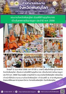 เเรงงานจังหวัดพิษณุโลก ร่วมพิธีทำบุญตักบาตรเนื่องในเทศกาลวันมาฆบูชา ประจำปี พ.ศ. 2568