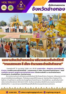 แรงงานจังหวัดอ่างทองร่วม พธีบวงสรวงสิ่งศักดิ์สิทธิ์ “งานแสดงแสง สี เสียง ตำนานพระตำหนักคำหยาด”