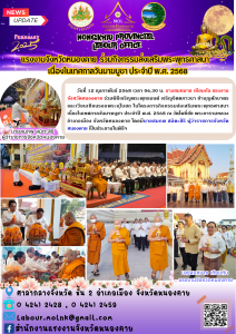 แรงงานจังหวัดหนองคาย ร่วมกิจกรรมส่งเสริมพระพุทธศาสนา เนื่องในเทศกาลวันมาฆบูชา ประจำปี พ.ศ. 2568