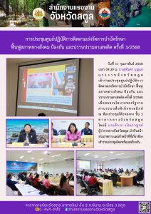 แรงงานจังหวัดสตูล เข้าร่วมประชุมศูนย์ปฏิบัติการติดตามเร่งรัดการบำบัดรักษา ฟื้นฟูสภาพทางสังคม ป้องกัน และปราบปรามยาเสพติด ครั้งที่ 3/2568