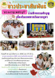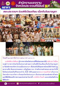 “แรงงานเพชรบุรี” ร่วมกิจกรรมทำบุญ เนื่องในเทศกาลวันมาฆบูชา