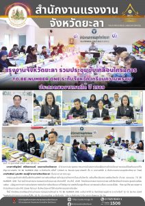 แรงงานจังหวัดยะลา ร่วมประชุมขับเคลื่อนโครงการ TO BE NUMBER ONE ระดับจังหวัด เตรียมความพร้อม ประกวดผลงานภาคใต้ ปี 2569