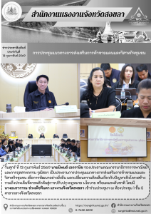 สำนักงานแรงงานจังหวัดยะลา เข้าร่วมประชุมพิจารณา (ร่าง) แผนพัฒนาสังคมจังหวัดยะลา ปี 2569