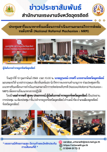 สรจ.อุตรดิตถ์ ร่วมประชุมหารือแนวทางขับเคลื่อนการดำเนินงานตามกลไกการส่งต่อระดับชาติ (National Referral Mechanism : NRM)