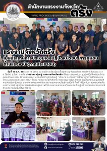 แรงงานจังหวัดตรัง เป็นประธานการประชุมเชิงปฏิบัติหน่วยบริการชุมชนด้านแรงงาน (ภาคประชาชน)
