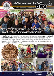 แรงงานจังหวัดตรัง เป็นประธานเปิดโครงการแก้ไขปัญหาความเดือดร้อนด้านอาชีพ ประจำปีงบประมาณ พ.ศ. 2569 จังหวัดตรัง หลักสูตร การทำการแปรรูปอาหาร (การทำน้ำพริกต่าง ๆ) (18 ชม.)