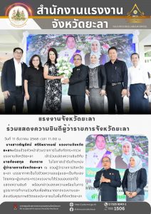 แรงงานจังหวัดยะลา ร่วมแสดงความยินดีผู้ว่าราชการจังหวัดยะลา