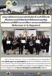 หน่วยงานสังกัดกระทรวงแรงงานจังหวัดอุทัยธานี มอบริบบิ้นไว้อาลัย เพื่อแสดงความจงรักภักดีและน้อมรำลึกในพระมหากรุณาธิคุณ สมเด็จพระนางเจ้าสิริกิติ์ พระบรมราชินีนาถ พระบรมราชชนนีพันปีหลวง เนื่องในวาระครบ 50 วัน (ปัญญาสมวาร)