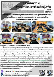 สำนักงานแรงงานจังหวัดสุโขทัยจัดโครงการส่งเสริม คุ้มครอง และพัฒนาคุณภาพชีวิตแรงงานนอกระบบ แรงงานสูงอายุ และแรงงานพิการ ประจำปีงบประมาณ พ.ศ. 2569