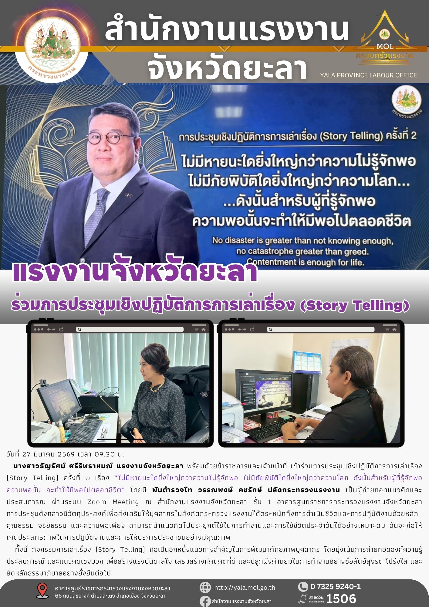 แรงงานจังหวัดยะลา ร่วมการประชุมเชิงปฏิบัติการการเล่าเรื่อง (Story Telling)