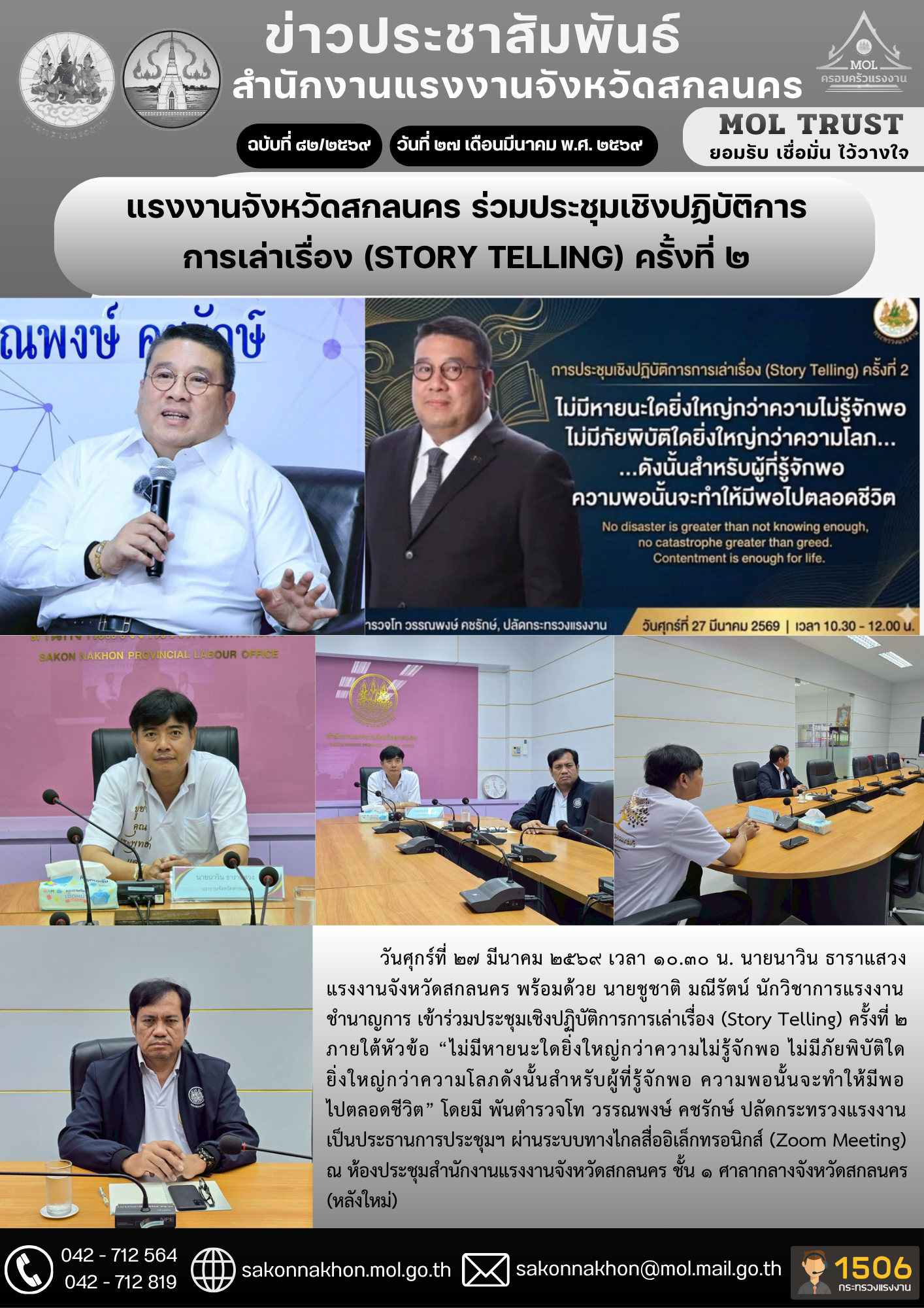 แรงงานจังหวัดสกลนคร ร่วมประชุมเชิงปฏิบัติการ การเล่าเรื่อง (Story Telling) ครั้งที่ ๒