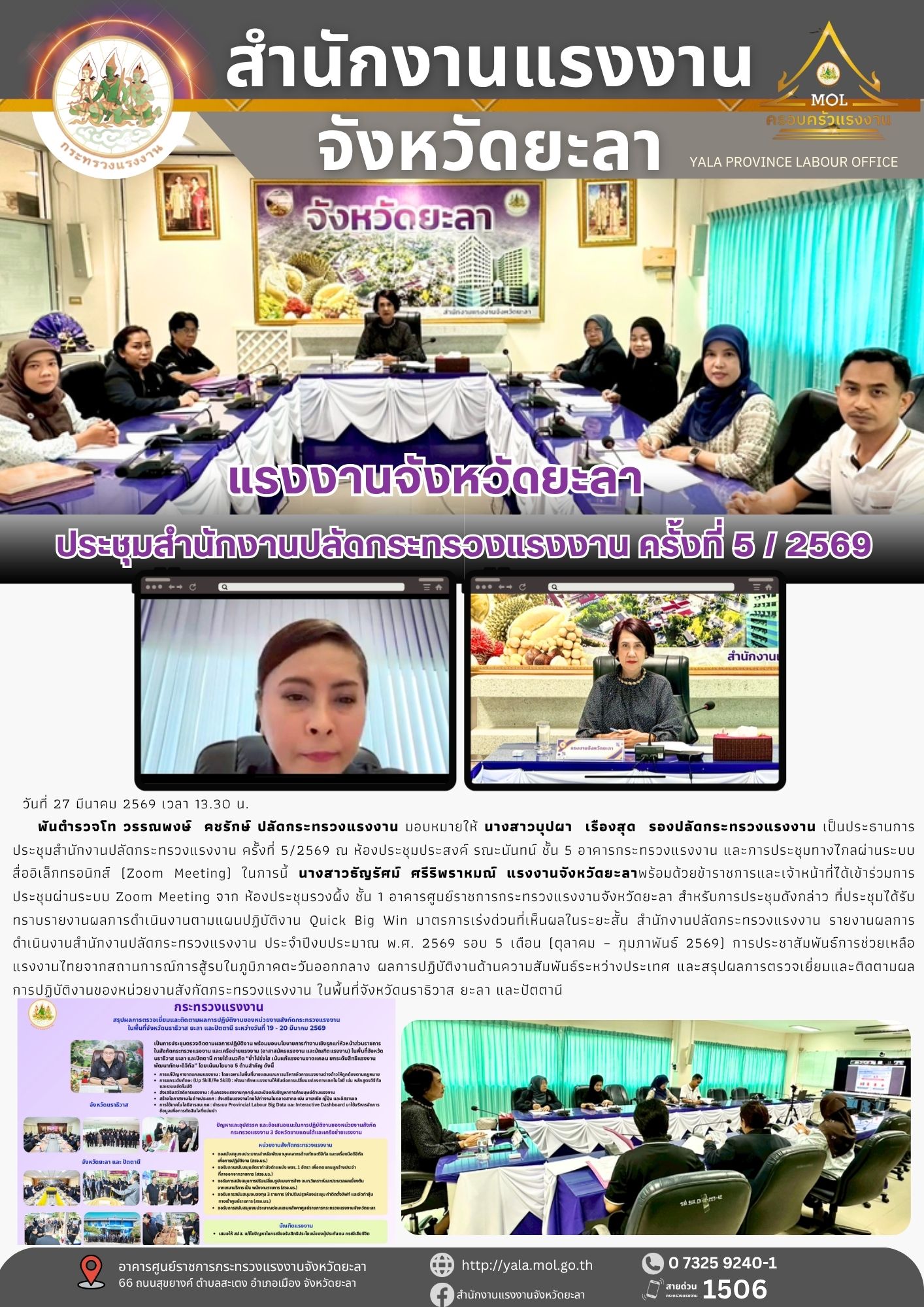 แรงงานจังหวัดยะลา ประชุมสำนักงานปลัดกระทรวงแรงงาน ครั้งที่ 5 / 2569