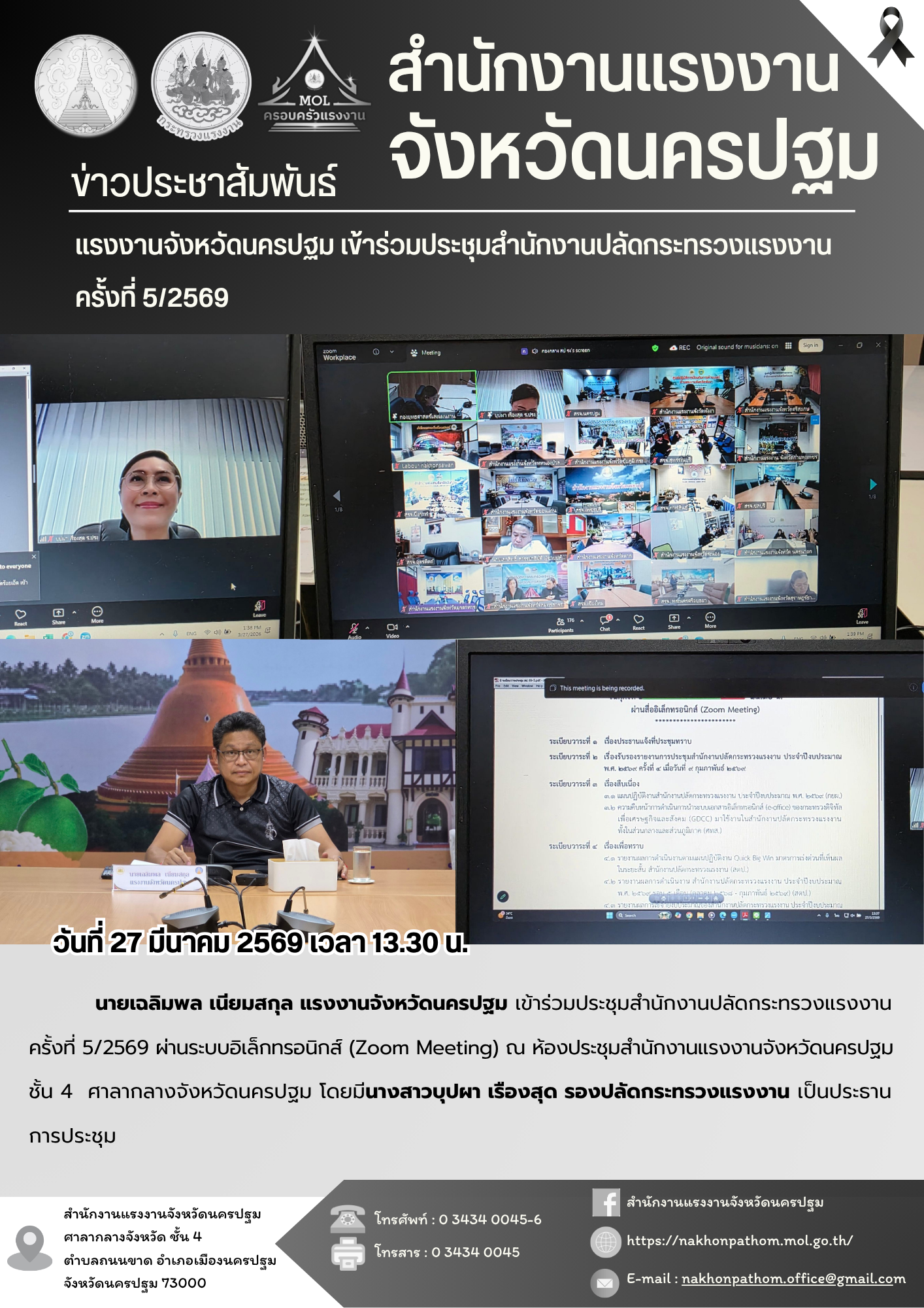 สรจ.นครปฐม เข้าร่วมประชุมสำนักงานปลัดกระทรวงแรงงาน ครั้งที่ 5/2569