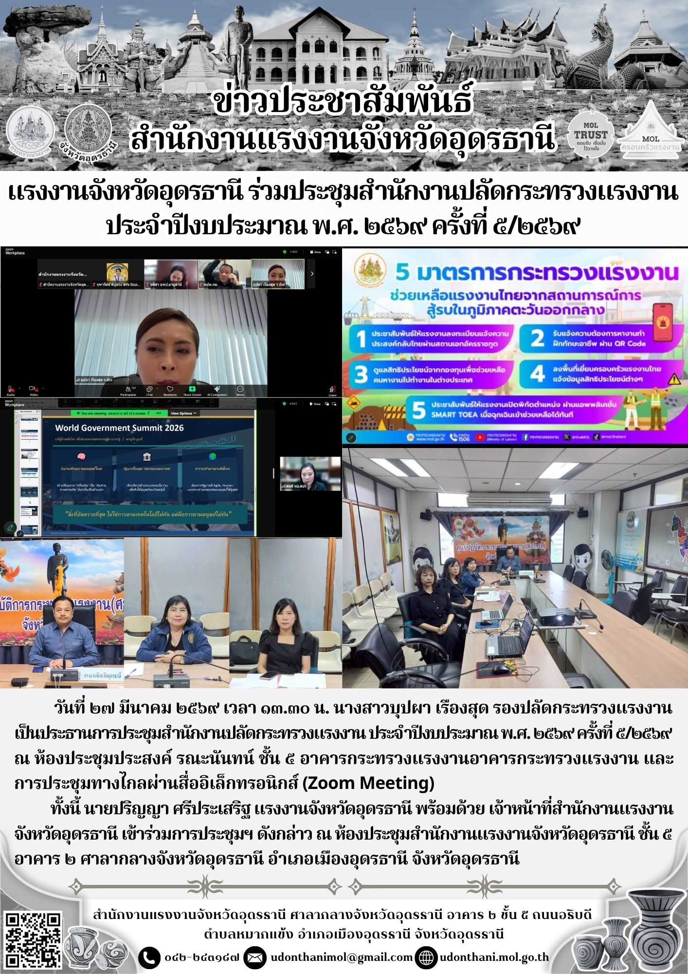 แรงงานจังหวัดอุดรธานี ร่วมประชุมสำนักงานปลัดกระทรวงแรงงาน ประจำปีงบประมาณ พ.ศ. ๒๕๖๙ ครั้งที่ ๕/๒๕๖๙