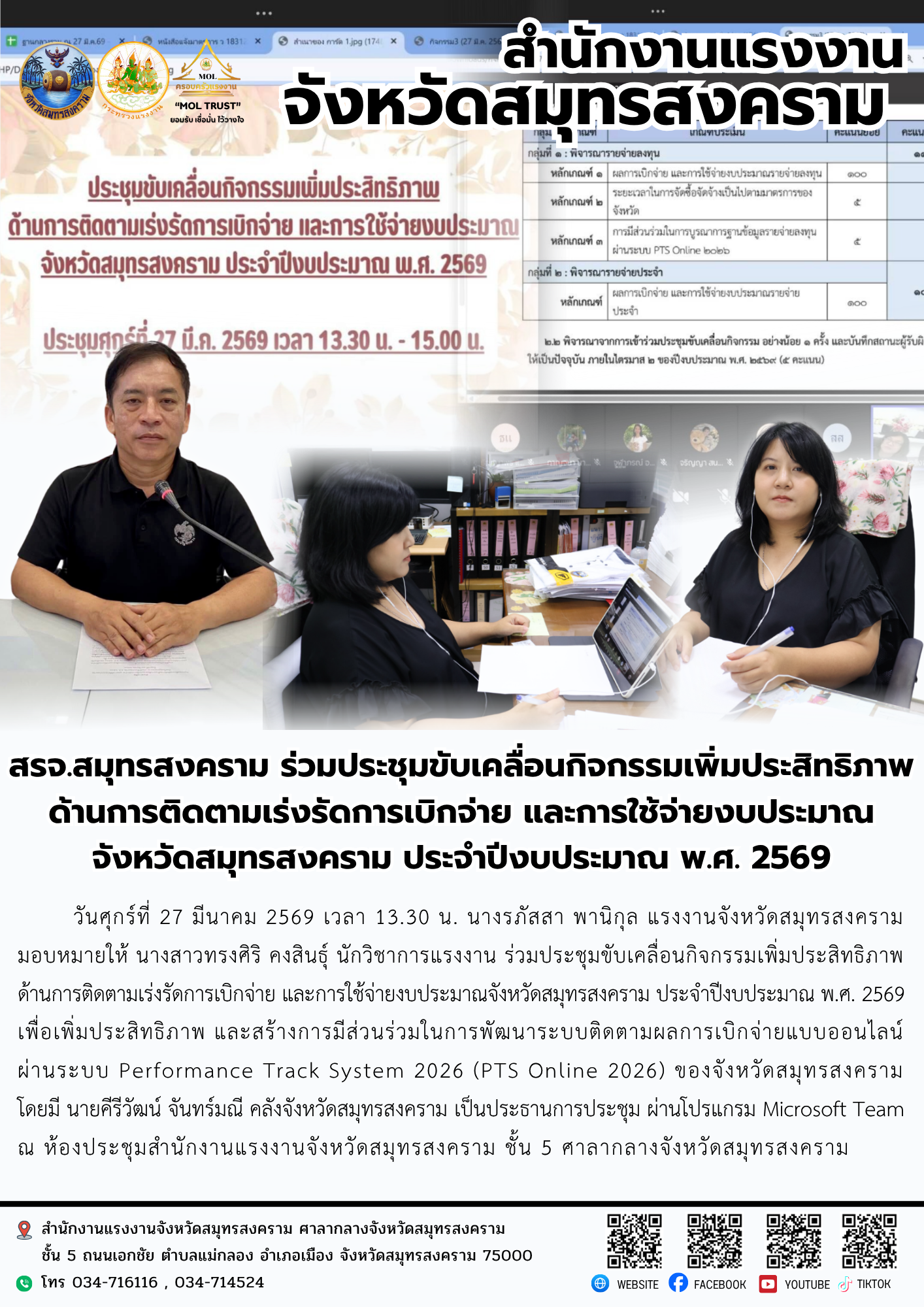 แรงงานสมุทรสงคราม ร่วมประชุมสำนักงานปลัดกระทรวงแรงงาน ประจำปีงบประมาณ พ.ศ. 2569 ครั้งที่ 5 ผ่านสื่ออิเล็กทรอนิกส์ Zoom Meeting