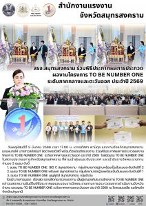 สรจ.สมุทรสงคราม ร่วมพิธีประกาศผลการประกวด ผลงานโครงการ TO BE NUMBER ONE ระดับภาคกลางและตะวันออก ประจำปี 2569